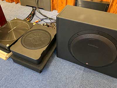パワードウーハーも3機種試聴可能です。carrozzeriaのTS-WH1000A、KICKERのHS10、ロックフォードのP300-12。