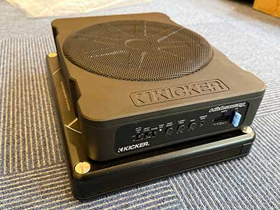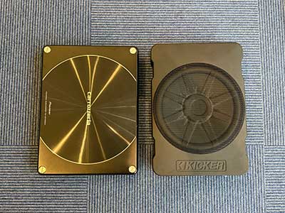 実際に試聴室で音を聴いてみましたが、ドカッとでかい低音が出るのかと思っていましたが、さすが30cmと思える深い低音が、こんな薄いウーハーから出ることにとても驚きました。深く豊かな低音が空気を揺さぶってくれる、そんな質の高い超低温再生が可能です。これはHiFiで使ってほしい、そんなパワードですね。もちろん、KICKERらしい鳴りっぷりながら、それだけにとどまらない。シート下には置けなくてもシステムに組み込みたくなるだけの魅力あるウーハーです。