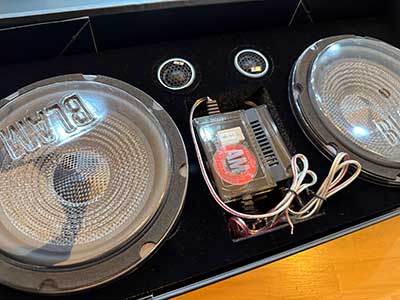 インナーバッフルでしっかりと収まるようにミッドレンジのバスケットが薄いタイプをチョイス。こちらは当店の試聴室で試聴可能です。当店のスピーカー交換パッケージプレミアムラインで選んでいただきました。