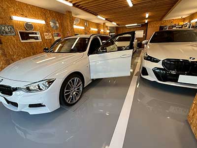 今日の作業は白いセダン、セダン、ステーションワゴン。手前左のBMWのF31には