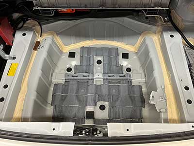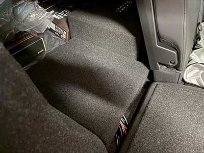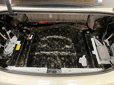 後部座席のうらです。こちらもまずはデッドニング。このあと、吸音、遮音作業を進めます。この手順がとても大事です。