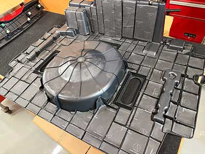 スペアタイヤの上に来るカバーです。リブが多くて処理がとても大変でした、