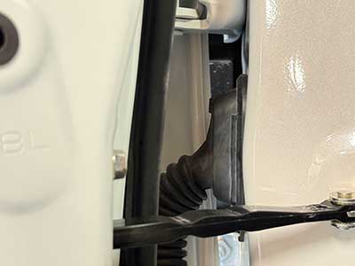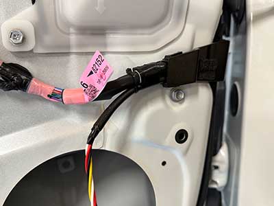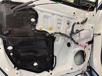 ドアの取付はこれからですが、まずはドアにスピーカーケーブルを通します。