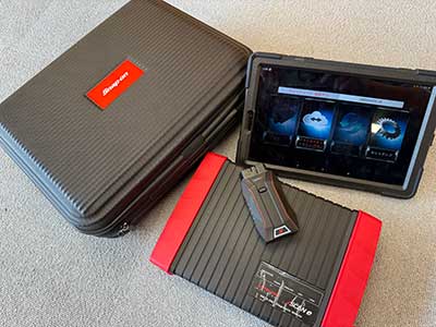 当店では新車の車両をお預かりすることがとても多く、そういった車はちょっとした脱着でコンピューターにエラーが蓄積されてしまうことがあります。そのため、当店ではSnap-onの車両診断用テスターを使っています。
