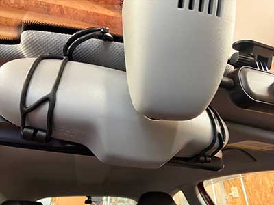 ミラーの裏側からみたところです。しっかりとゴムバンドで固定されています。このゴムバンドもいろんな形のミラーにフィットしやすいようによく考えられています。