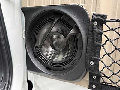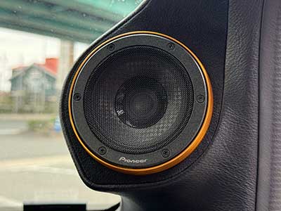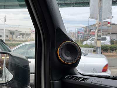 AピラーにCSTドライバー。M&Mのメタルバッフルを使っています。