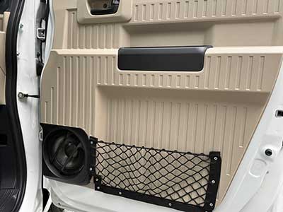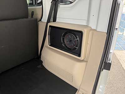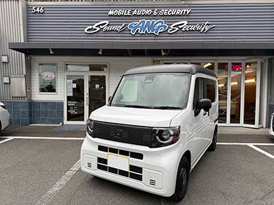 当店で装着したデモカーはホンダN-VANです。なんだかんだバンというくらいなんで、内張りがないところもあったり軽自動車なんでドアが薄かったり、デモカーとしてはそもそも課題が多い車両でした。