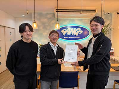 東北パイオニアの技術者の安西さん(右)松下さん(左)。事前に提示されていた課題曲をしっかりと表現できることがこのスピーカーを扱うことができる認定店となる条件。実際にお店を回って認定確認を進めているそうです。無事認定店になれました。
