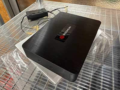 パワードウーハーを助手席下に、かろうじて入る高さでした、そしてGOLDHORNのDSP。フロント2WAYとサブウーハーですのでDSPのアンプは4ch。