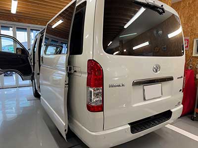 そんなことはともかく、こちらではハイエースにセキュリティーの施工です。ハイエースは新旧問わず、国内海外ともずっと人気の車なため盗難被害の報告が途絶えることがありません。