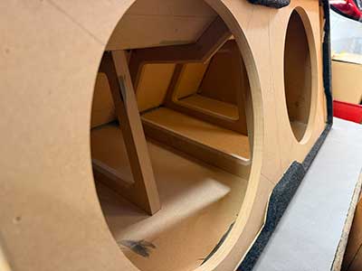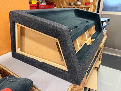 こちらは、見るからにウーハーボックス。ただいま作業中のクラウンスポーツのウーハーボックス。