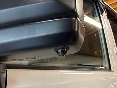 助手席ドアミラーの下にサイドカメラを埋め込み。